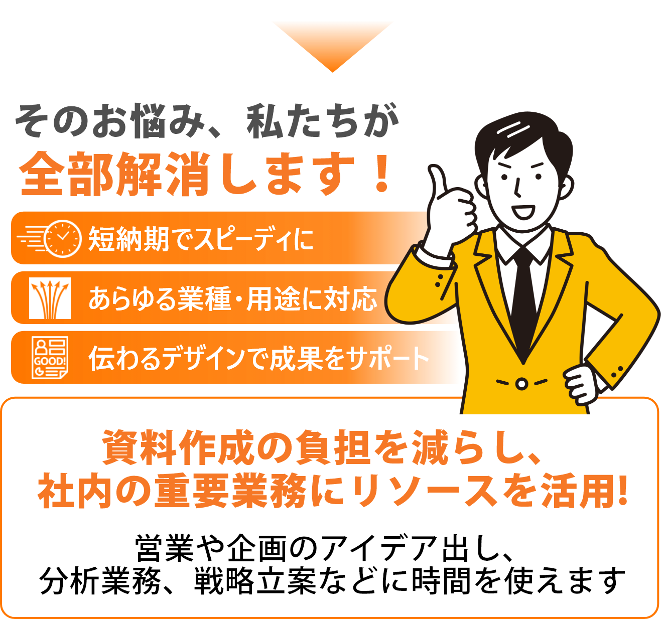 “伝わる”を広げる一貫体制で、あなたの資料にプロの力を。
