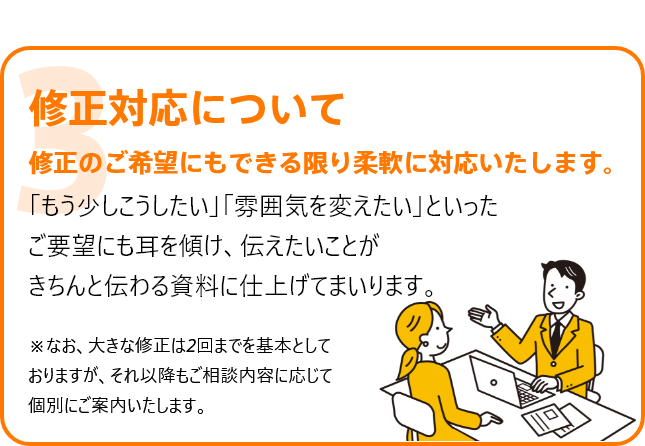 デザインのクオリティ、対応の柔軟性、納品後の安心感。